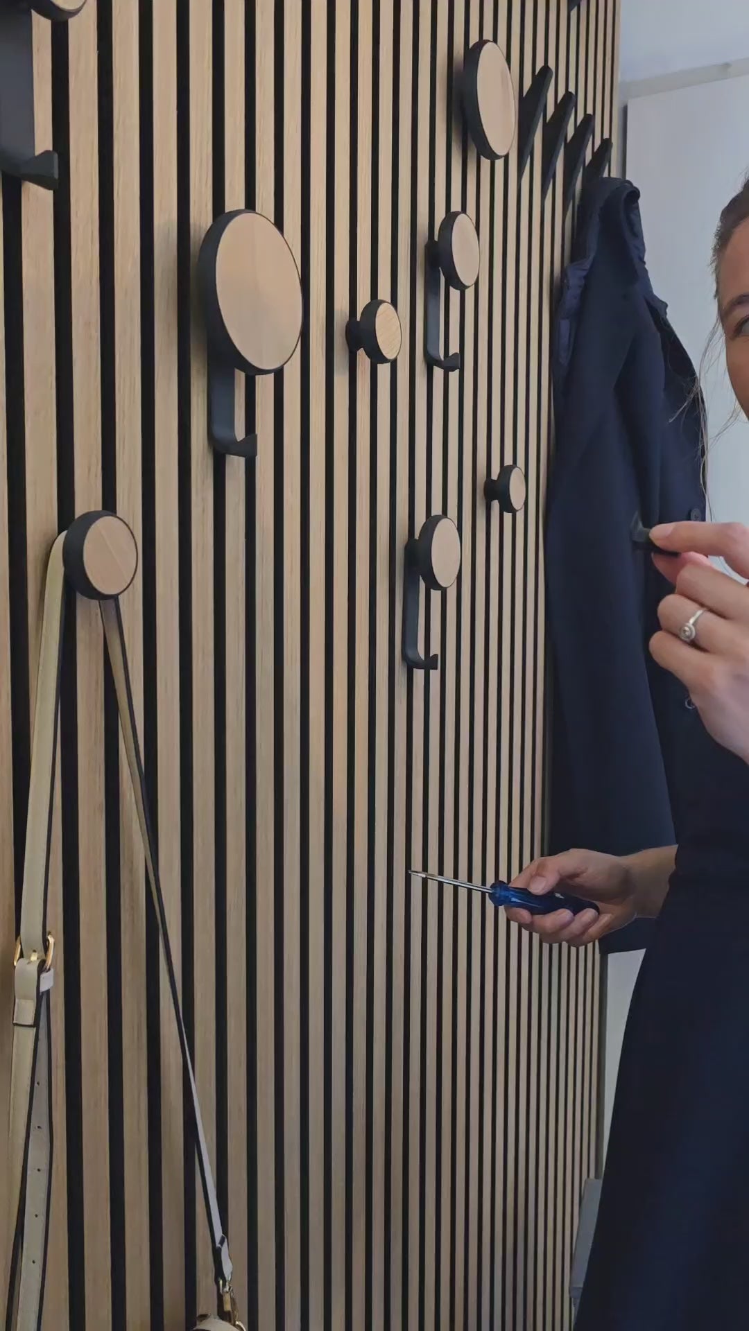 Enhance your acoustic panels with the sleek and functional Aku Panel Design Hook - Round Vineer - by WallTune. This meticulously crafted hook is the ideal complement to your AKU (acoustic) panel, offering a custom design that seamlessly integrates with popular brands such as WoodUpp, Hori, Nordic, Fibrotech, Bauhaus, Hornbach, and Obi. If you have Meastro panels please let me know.